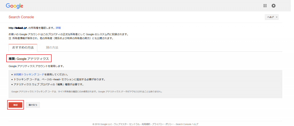 この画像を見ていただけると分かると思うのですが、サーチコンソールにサイトを登録する前に、アナリティクスのコードを既に記述していると画面の通りおすすめの方法で自動的にGoogleアナリティクスが出てくるのです。